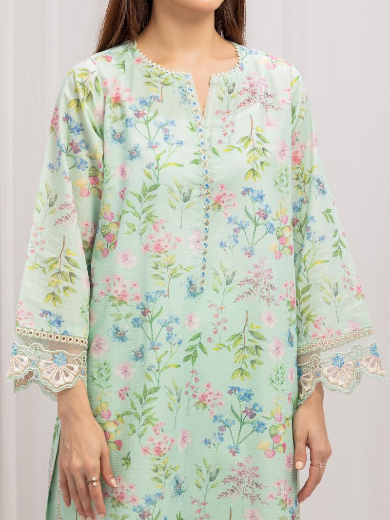 Plum Premium Khaddar Brown Colour Printed Colourful Leafs On 2 pc Stitched suit For Girls