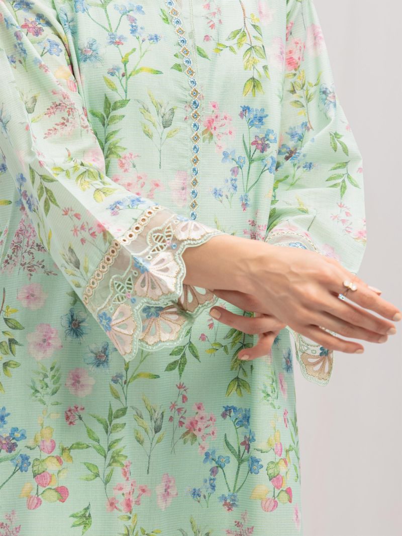 Plum Premium Khaddar Black Colour Printed Golden Leaves On 2 pc Stitched suit For Girls