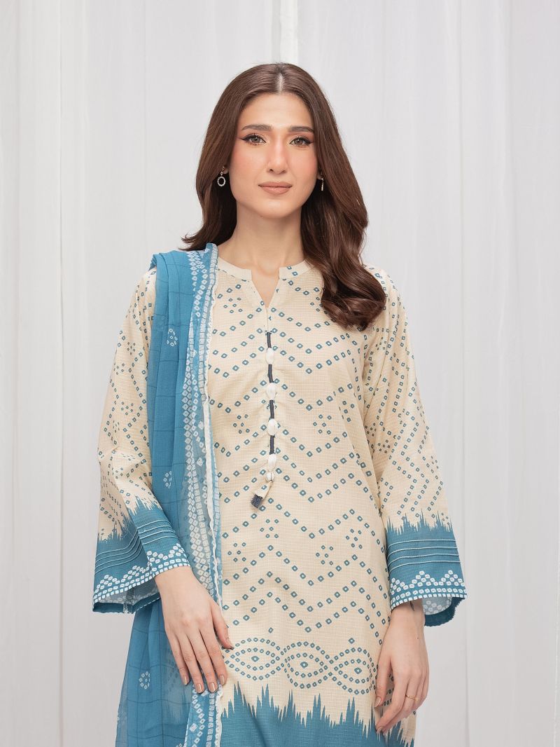 Plum Premium Khaddar Brown Colour Printed Colourful Leafs On 2 pc Stitched suit For Girls