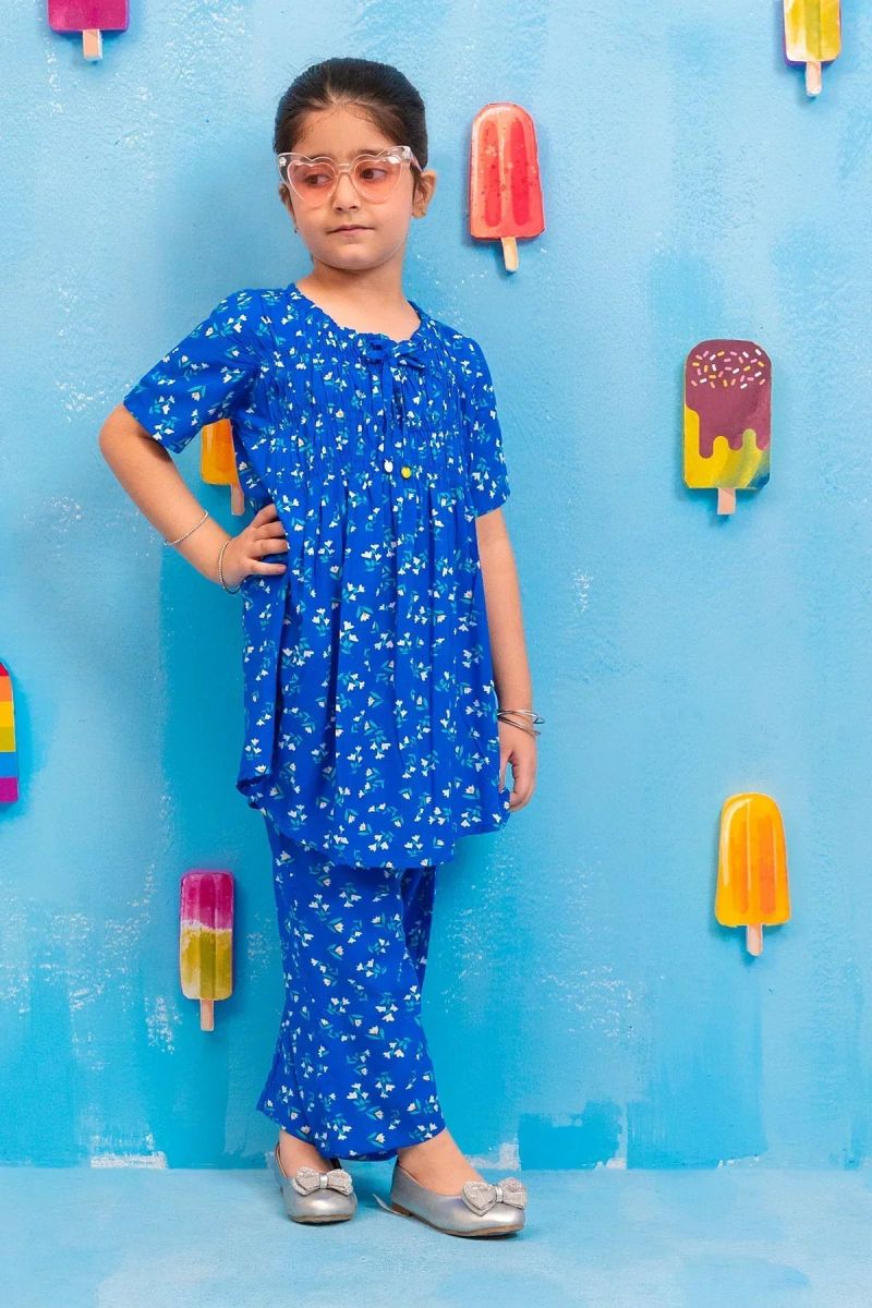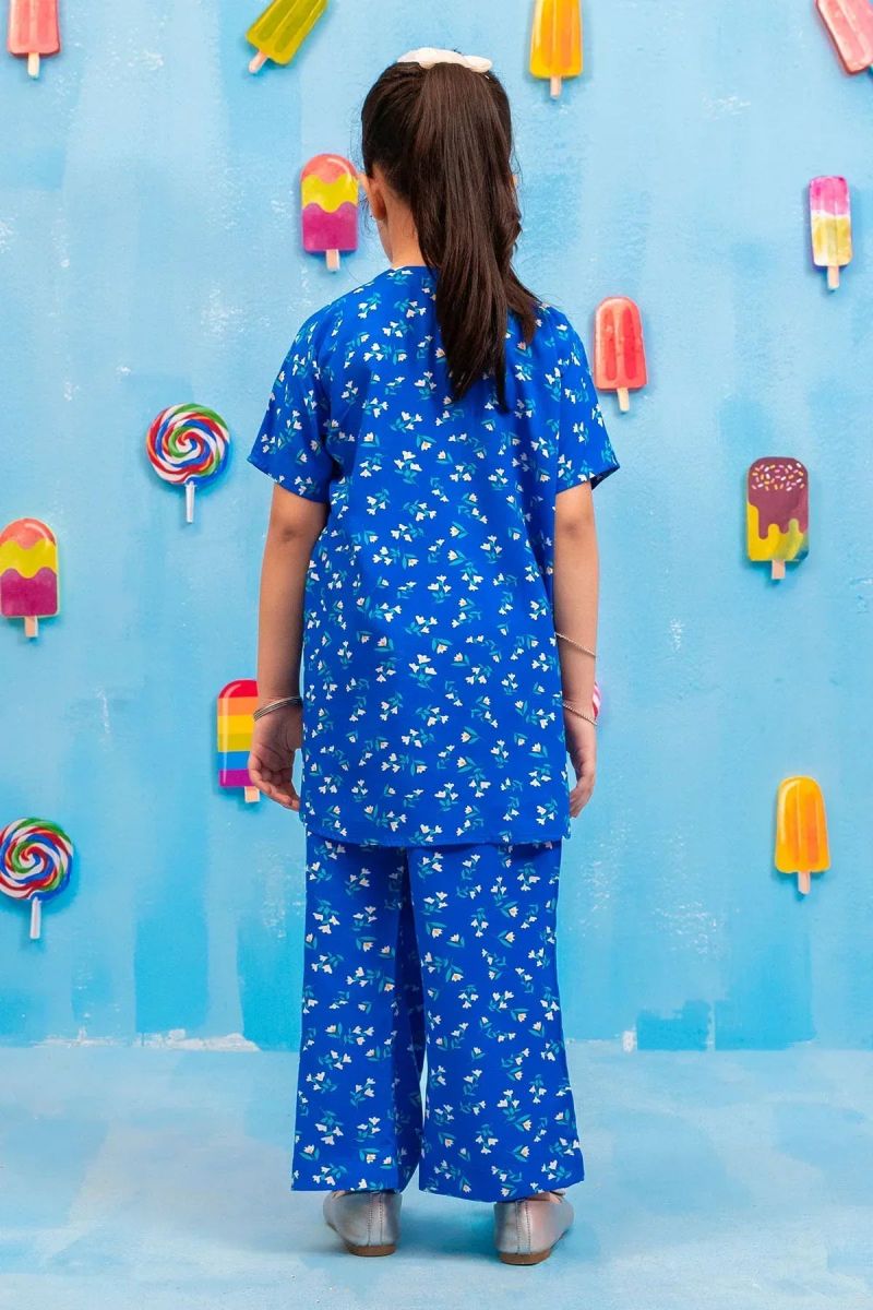 Bottom: Royal Blue Printed Boski Linen Trouser