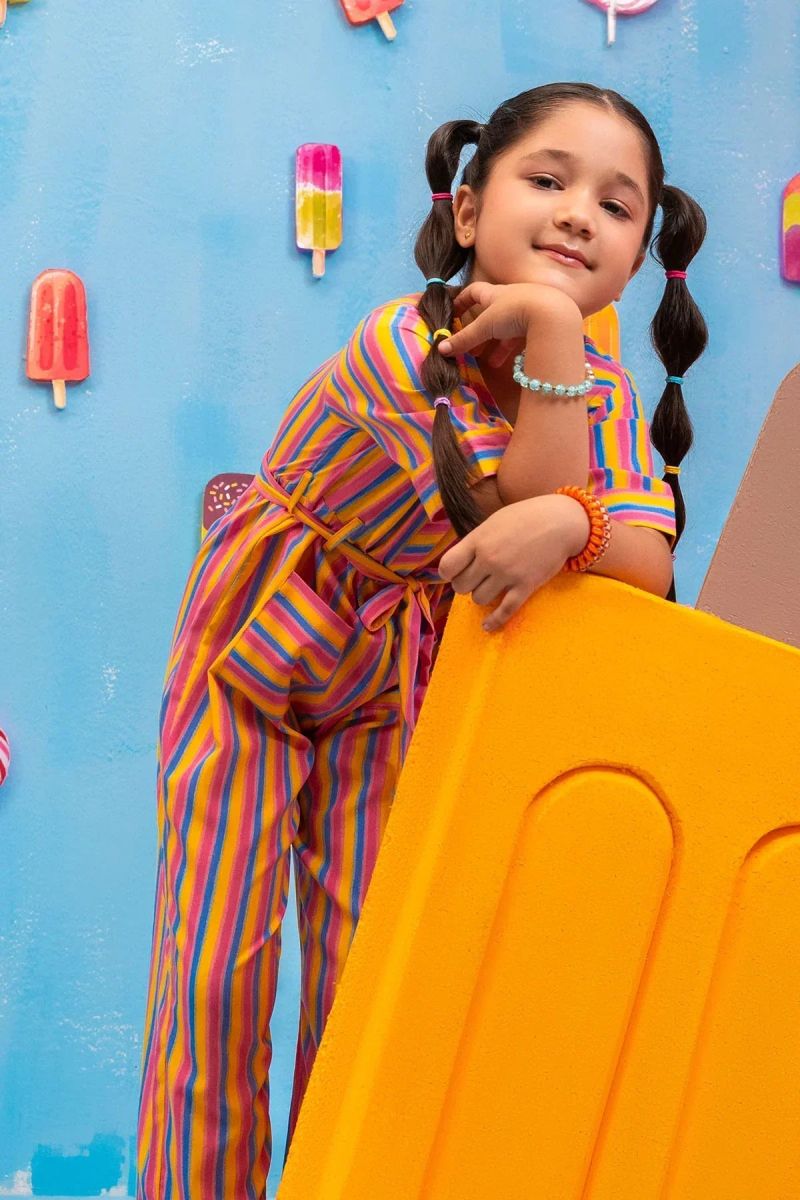 Plum 100% Cotton Lawn Rust Colour Printed Yellow Flowers Embroidered Yellow threads On Stitched 2 pc suit for Girls.