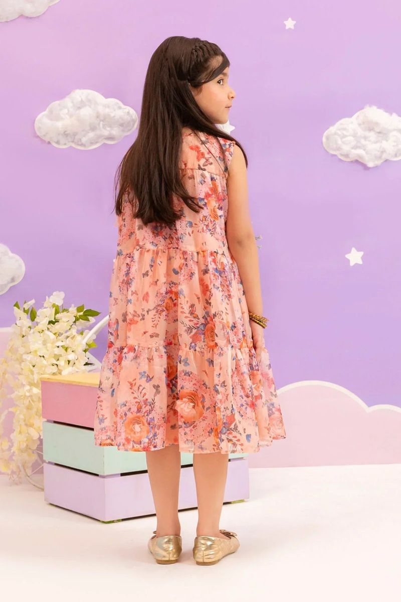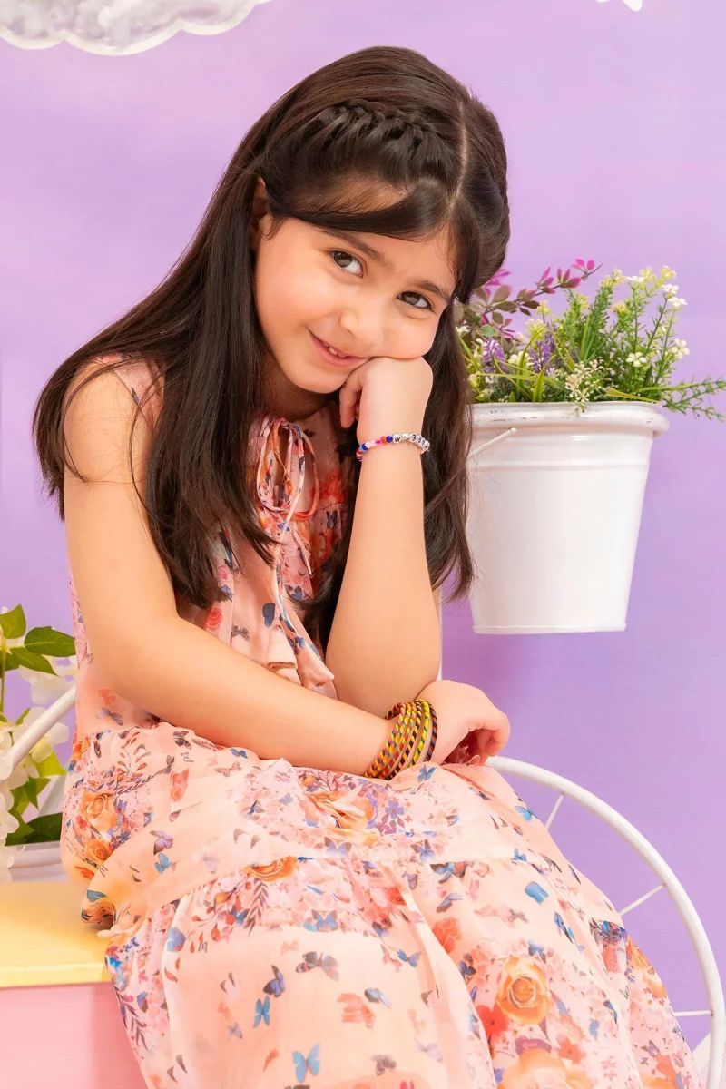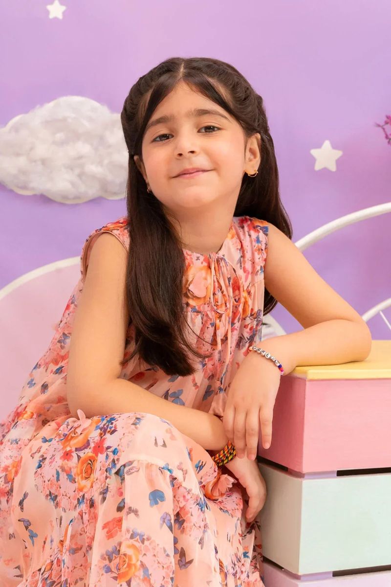 Plum 100% Cotton Lawn Peach Colour Printed Blue White Flowers Embroidered Blue threads On Stitched 2 pc suit for Girls.