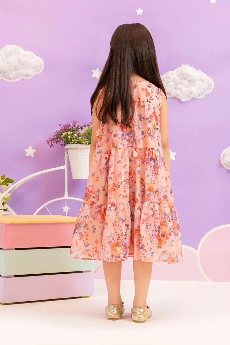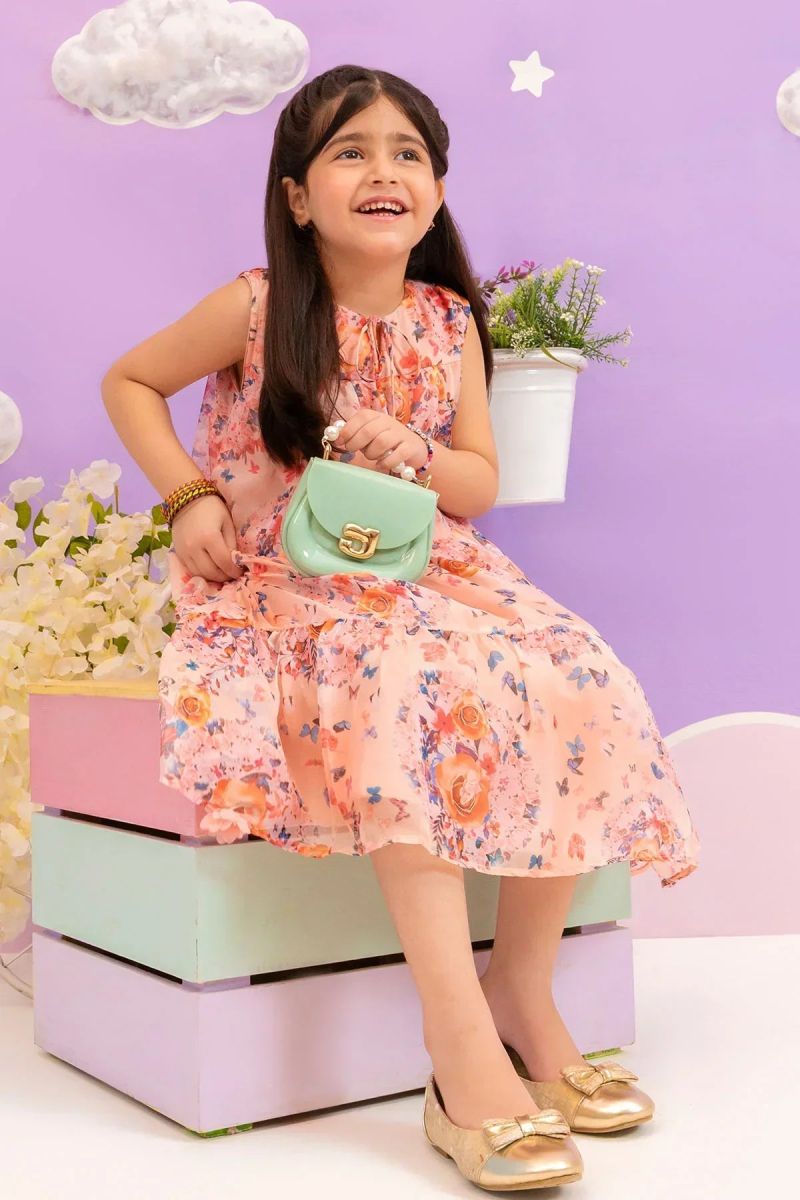Top: Printed Chiffon Dress With Malai Crepe Lining