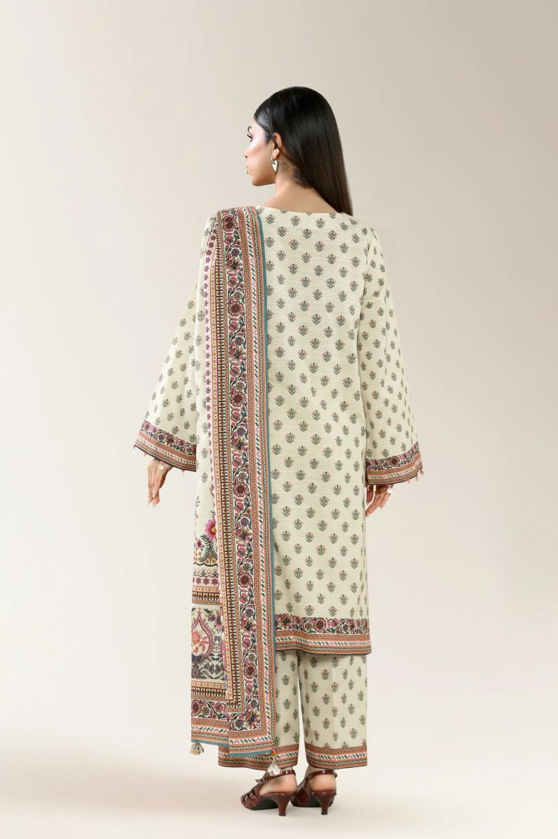 Plum 100% Cotton Lawn Black Colour Printed Almond Biege Flowers Embroidered Off White threads On Stitched 2 pc suit for Girls.