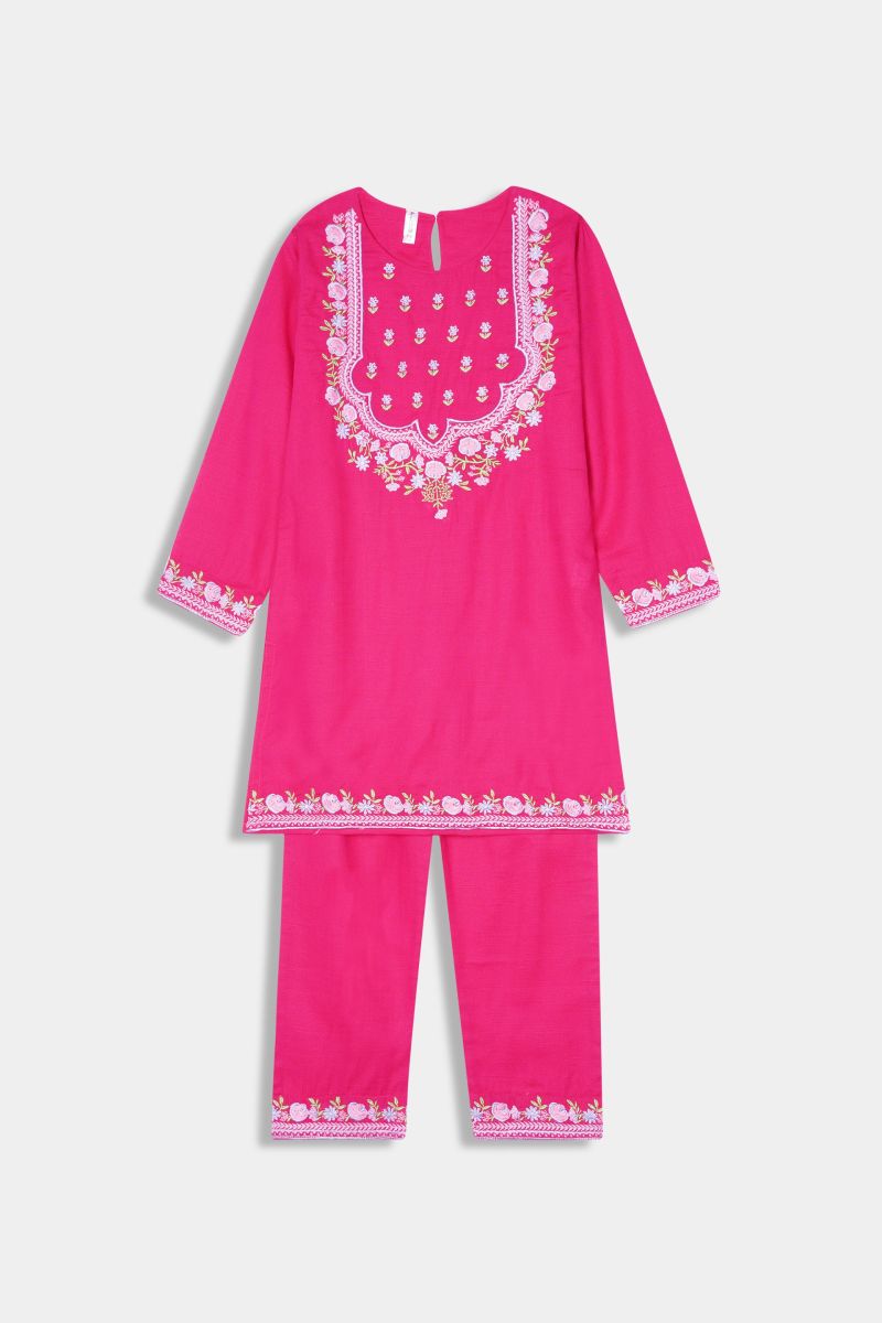 Plum Premium Khaddar Pink Colour Embroidered Purple 2 pc suit For Girls.