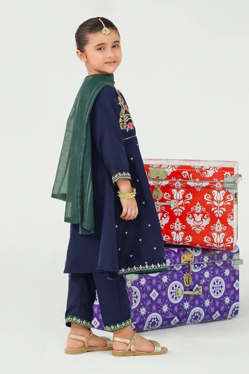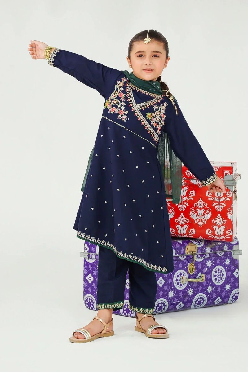 Top: Navy Blue Raw Silk Kurta With Embroidery
