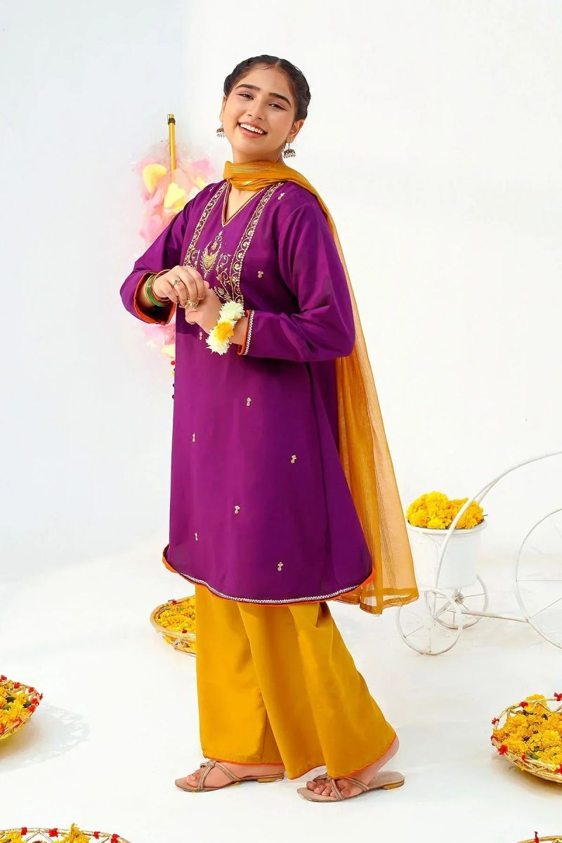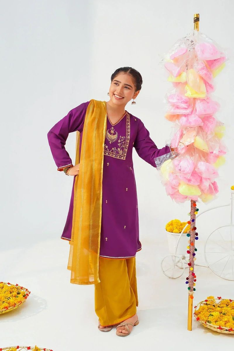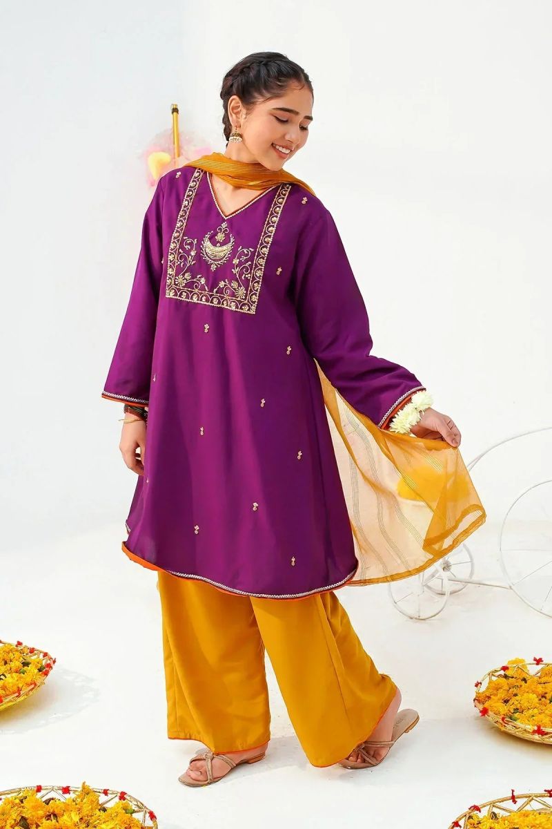 Top: Purple Raw Silk Kurta With Hand Adda Work