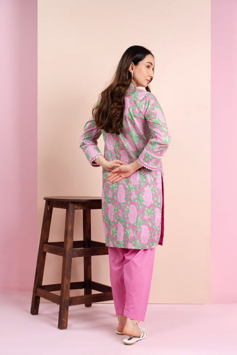 Unstitched 1-Piece Printed Silver Lawn Shirt Color: Pink Shirt: Printed Silver Lawn Shirt 2.5 Meters Fabric: Lawn Care Instructions: