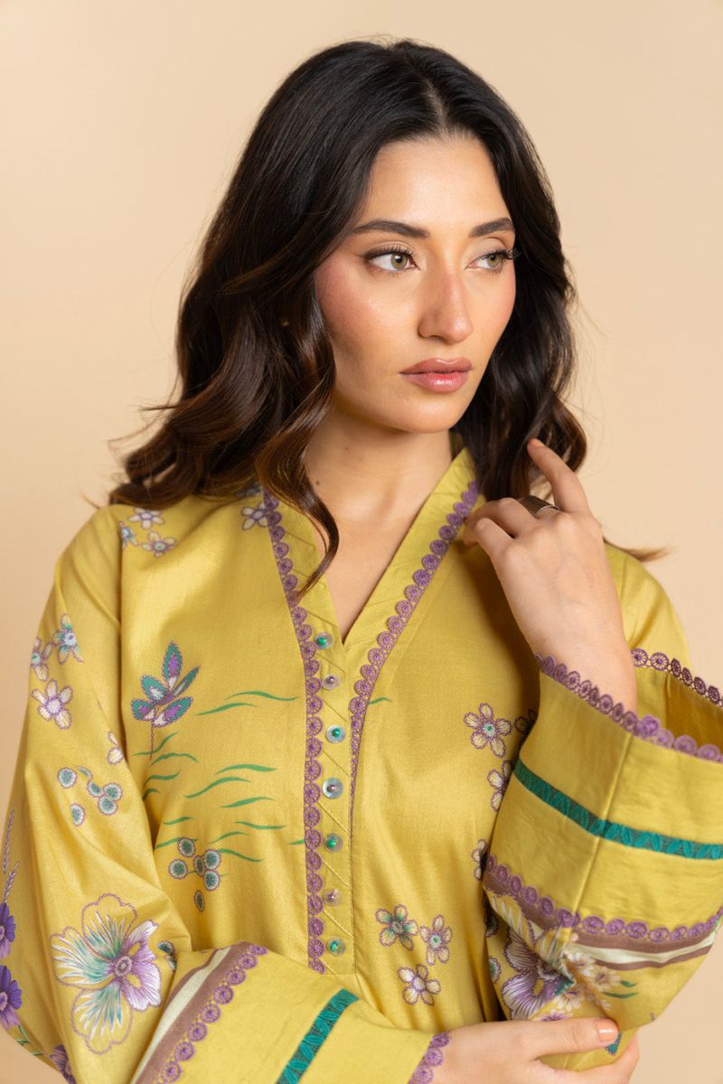 Unstitched 1-Piece Digital Printed Cambric Shirt Color: Yellow Shirt: Printed Digital Cambric Shirt 2.5 Meters Fabric: Cambric Care Instructions:
