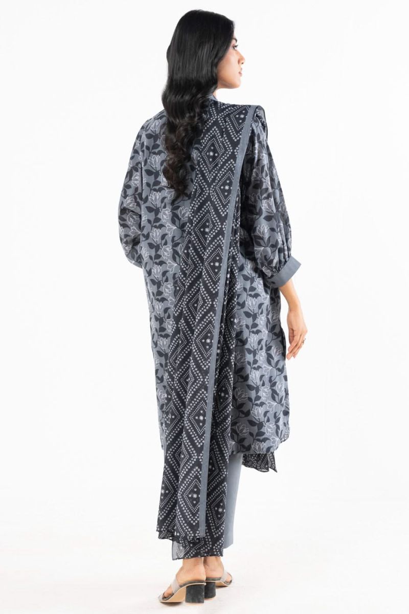 Printed Lawn Suit With Silver Lawn Dupatta