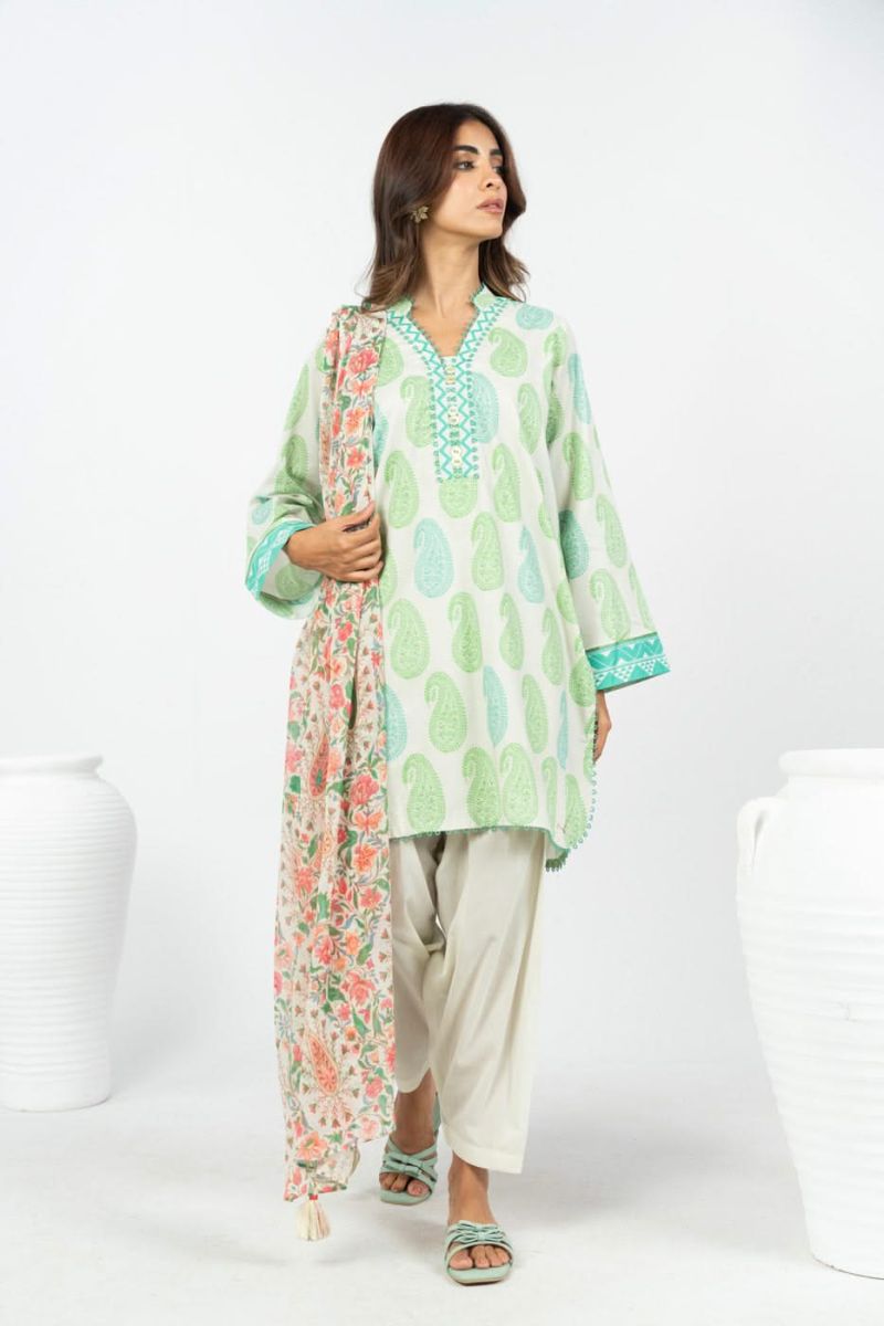 Paste Printed Dobby Suit With Dyed Light Cambric Trouser