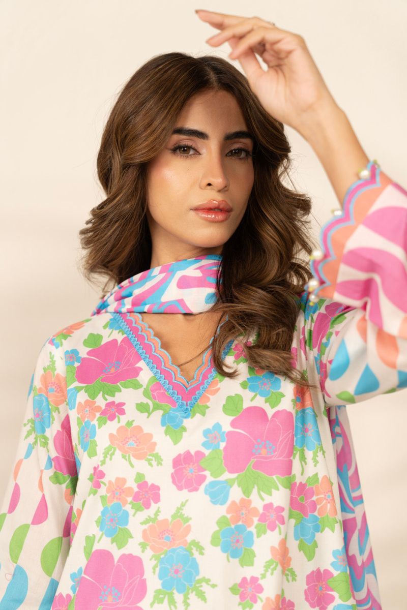 Printed Light Cambric Suit With Printed Lawn Dupatta