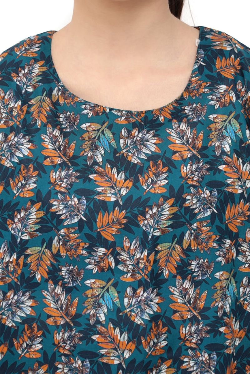 Plum Digital Lawn Blue Colour Printed Mustard Sky Blue White Leaves On 2 pc stitched suit For Girls.