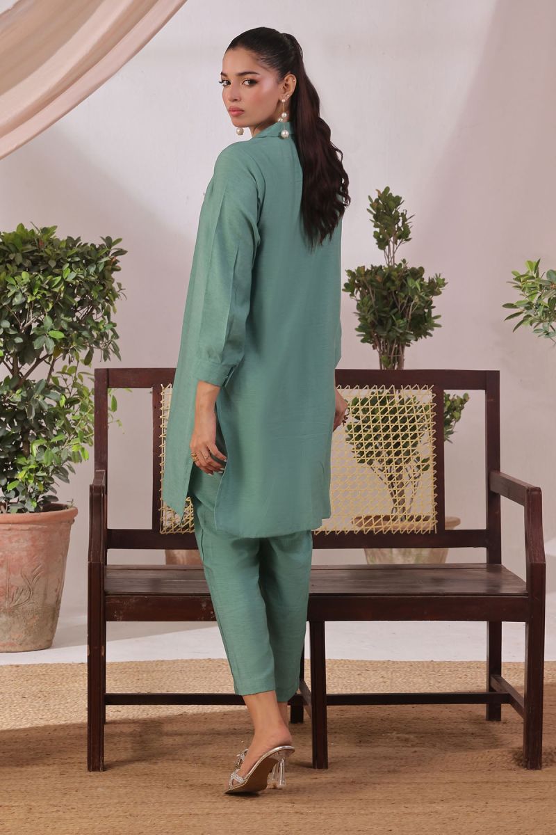 Top: Green Slub Cotton Kurta