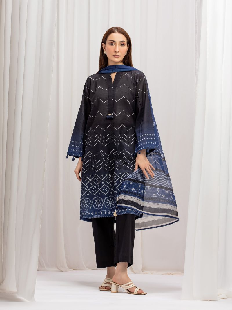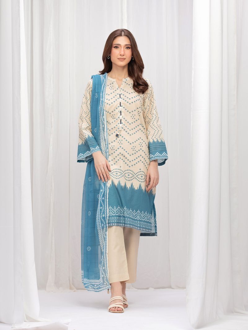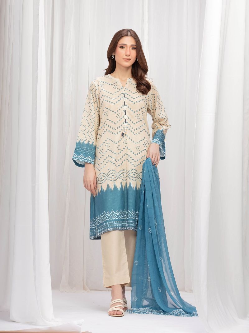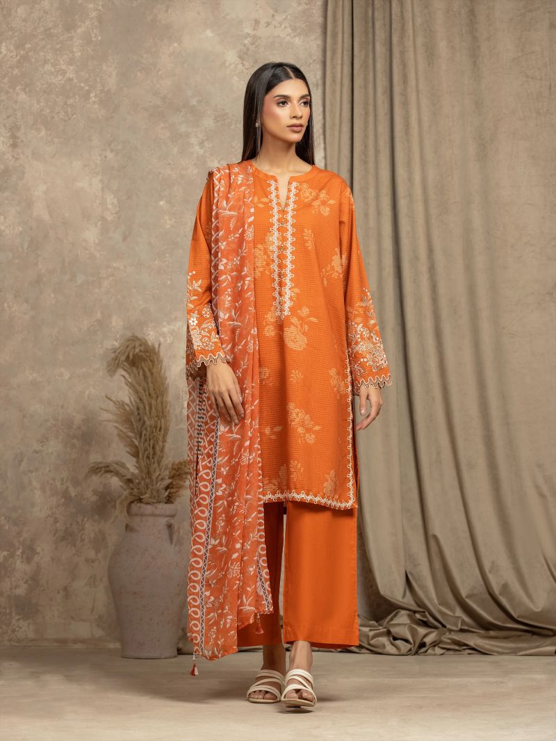 Top: Peach Slub Lawn Kurta With Crotia Laces