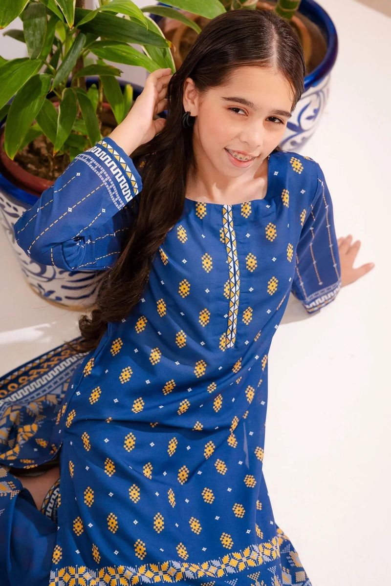 Bottom: Blue Swiss Lawn Digital Printed Trouser