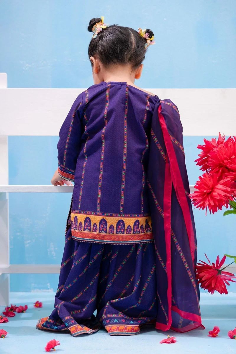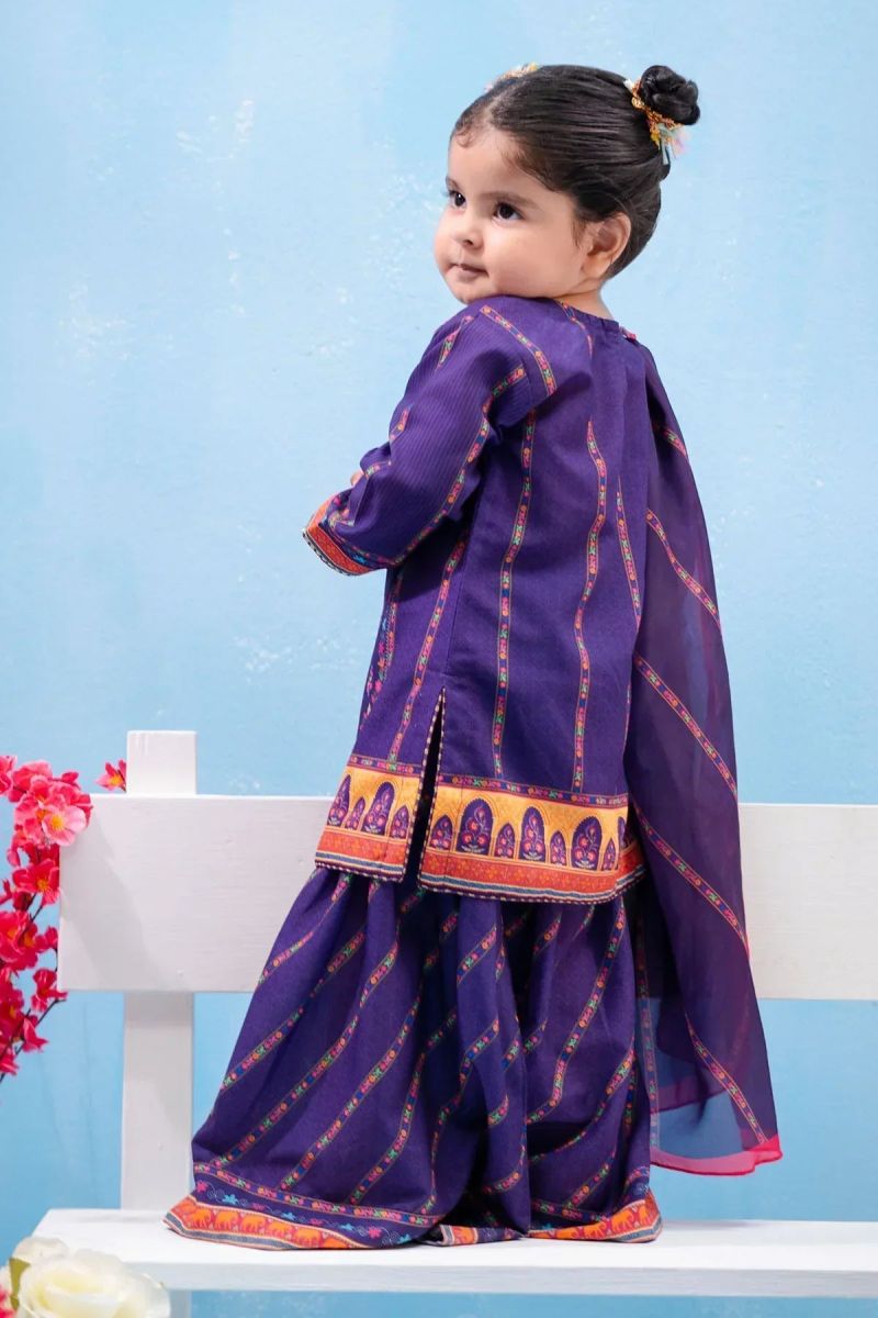 Bottom: Purple Swiss Lawn Digital Printed Gharara Pants