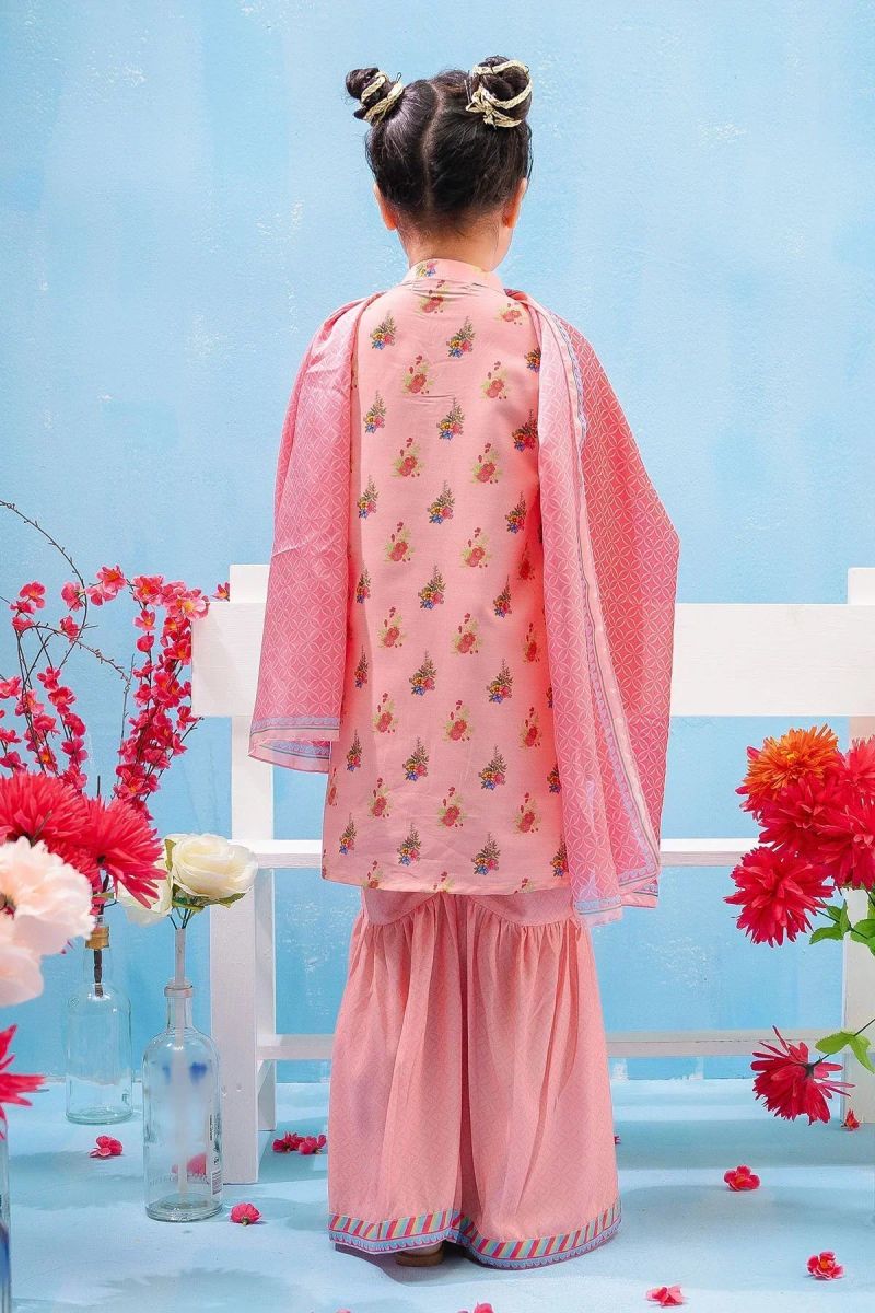 Top: Peach Swiss Lawn Digital Print Kurta with Gota Laces