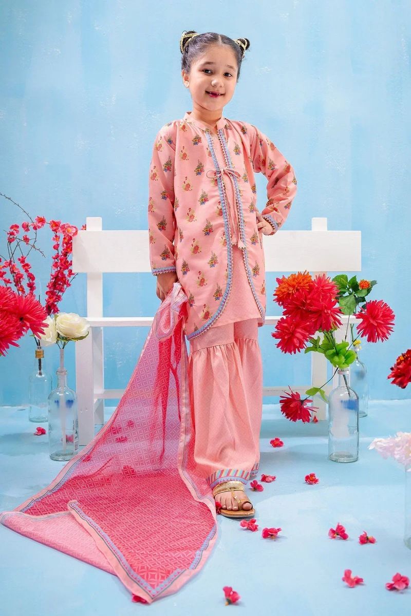 Top: Pink Swiss Lawn Top with Digital Print and Embellishments