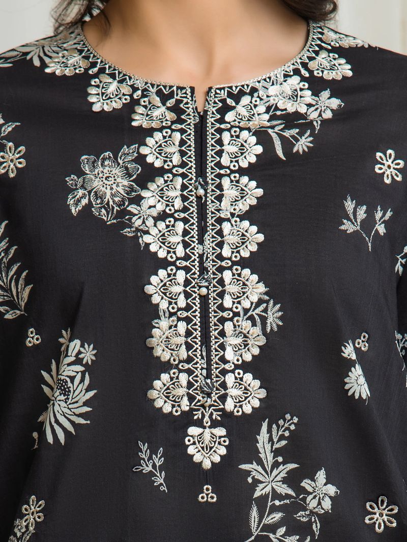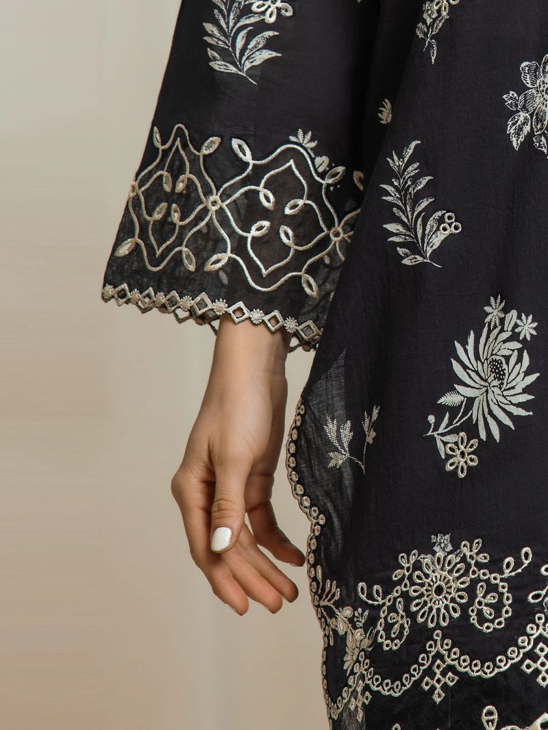 Black Embroidered Unstitched 2PC