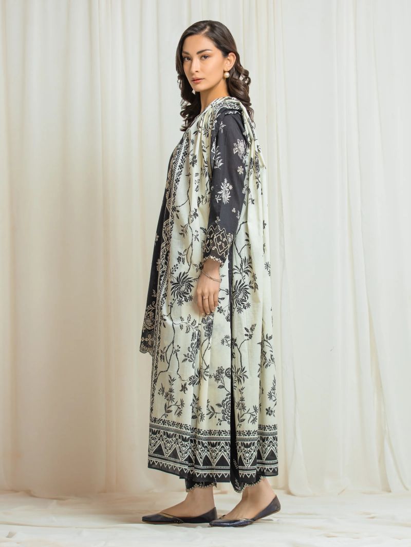 Cream Printed Unstitched 3PC