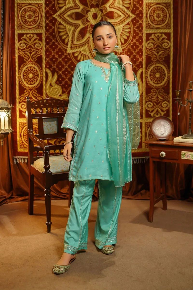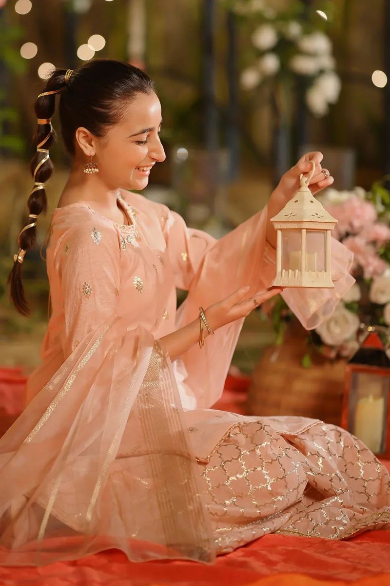Bottom: Ivory White Malai Crepe Trouser with Gota Laces