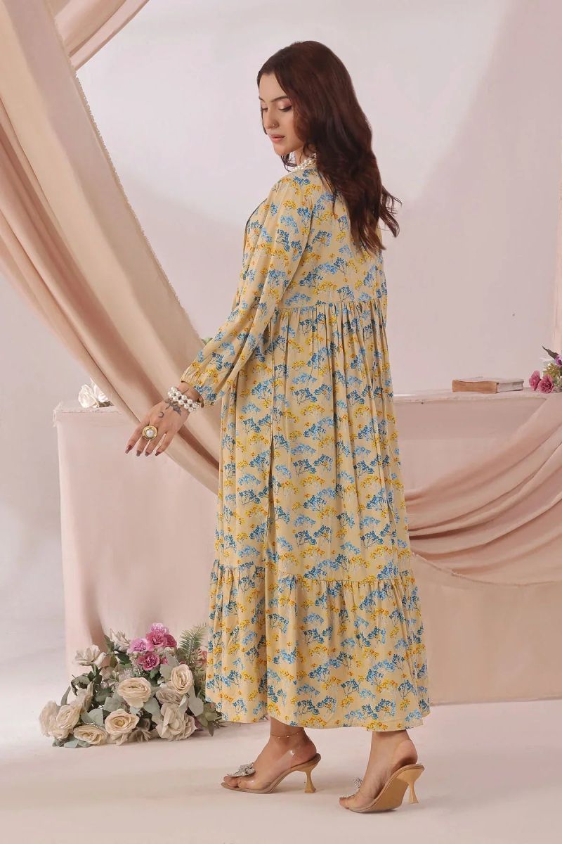 Top: Beige Printed Boski Linen Long Dress